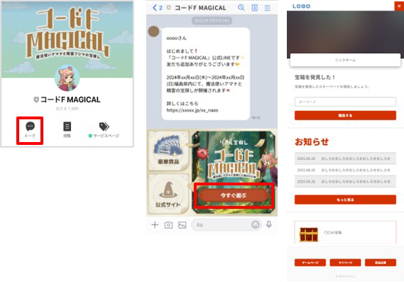 LINEのお友達登録からゲームサイトへ遷移。参加登録が不要なため気軽に参加が出来ます。